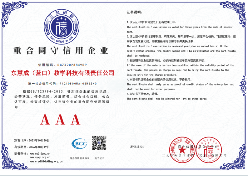 東慧成(營(yíng)口)教學(xué)科技有限責(zé)任公司
